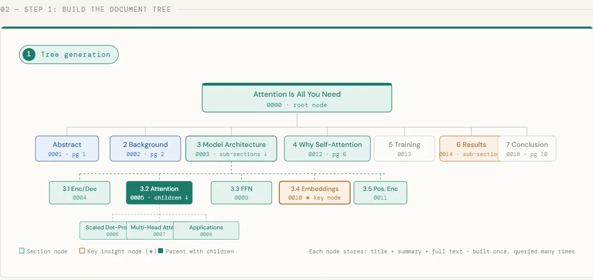 In this article, we will use PageIndex to index the Seminal Transformer paper – “Attention Is All You Need” — and answer two contradictory questions against it without a single vector or embedding. Instead of encoding a PDF and returning the same, PageIndex builds a hierarchical tree of text categories, then uses GPT-5.4 consulting node summaries and identifying which paragraphs contain the answer — before reading a single word of the full text.